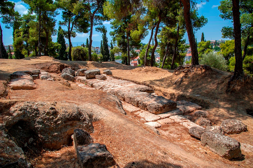 The Temple of Apollo Ismenios, belongs to one most important cult of Thebes (the other was the cult of Demeter Thesmophoros). It is situated on the pine-covered hill between the cemetery (Aghios Loukas) and the Electran Gates. The temple was excavated by A. Keramopoullos.
