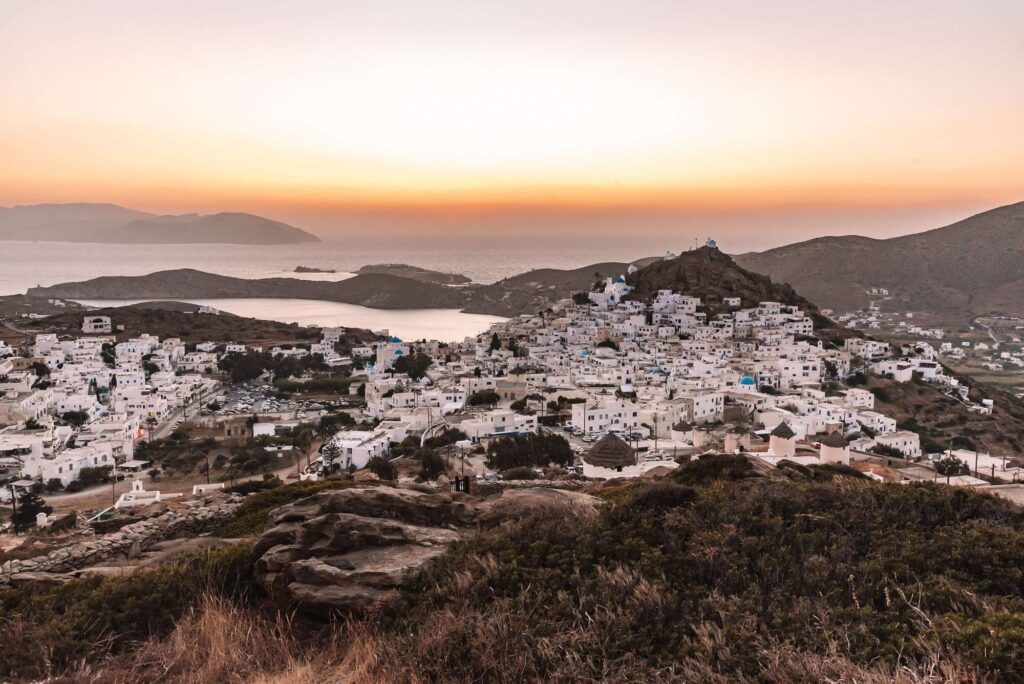 It lies to the south of Naxos between Sikinos and Santorini. The island is dry, barren but is especially picturesque. The ground is mountainous and is covered by hills. In Chora, there are lots of bars where the young people may enjoy the night life. It has many lonely beaches. The Milopota a is one of the most beautiful bays in the Mediterranean.