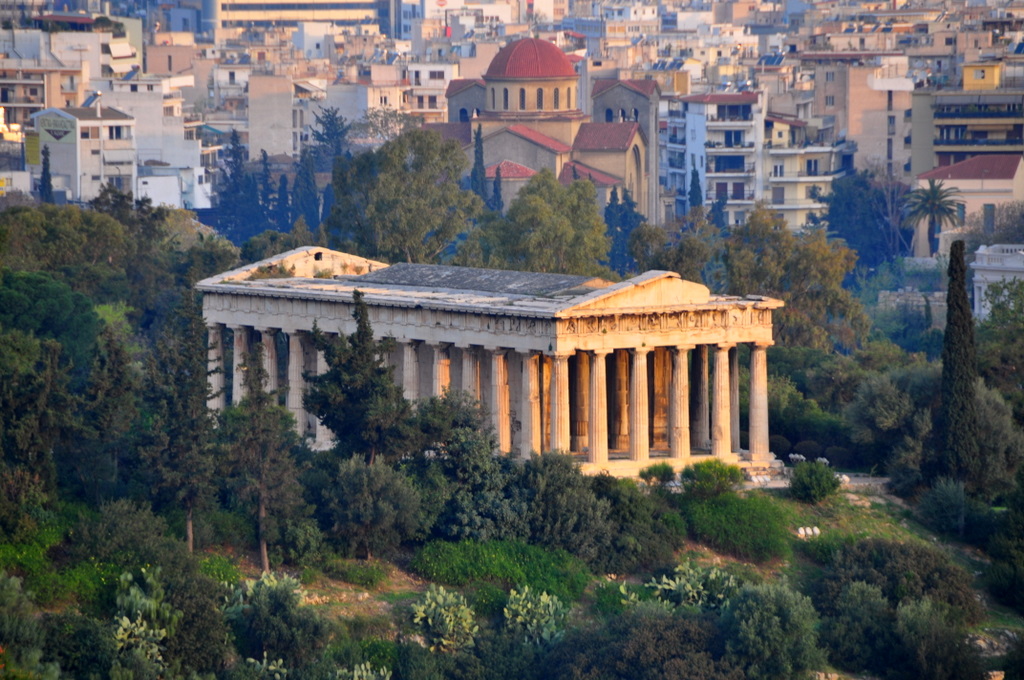 Thession despite its name, it was not a temple dedicated to Theseus but to the god Hephaistos and the goddess Athena. Situated at the western edge of the Agora (Market), it is today the best preserved temple of ancient times. Built in 449 B.C., it housed the statues of Hephaistos and Athena sculpted by Alkamenes.